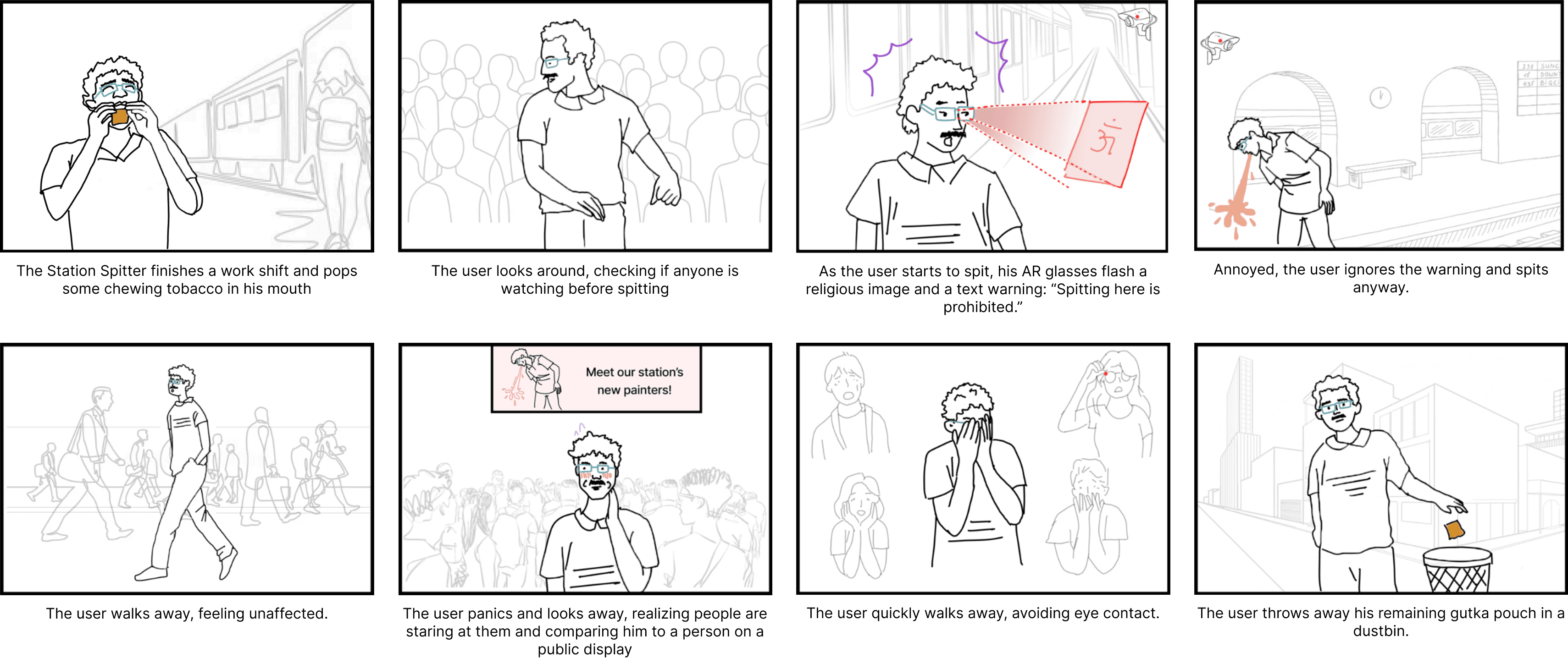 This speculative design deliberately provokes uncomfortable questions about the future of behavior modification technology. While positioned as a solution to a genuine urban problem, the intervention reveals a disturbing reality: the infrastructure required to implement it represents a hyper-surveilled dystopia where personal devices become tools of state control and cultural values are weaponized for compliance.