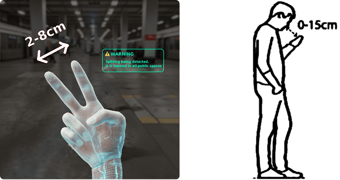 Note: None of these cannot and should not used as a determining factor in isolation. They would need to be cross checked with other interactions being detected by the AR Glasses as well as the ones being detected by the Surveillance Cameras