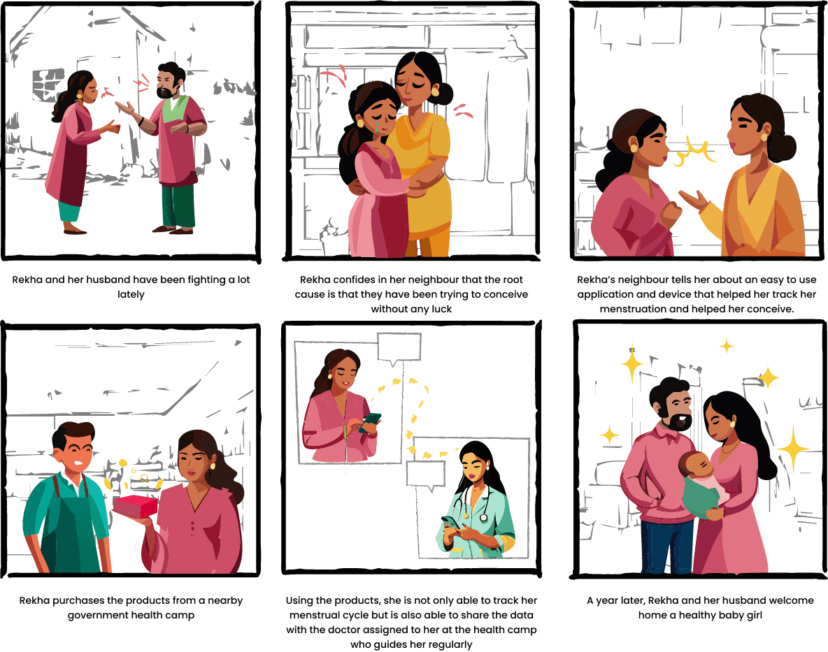Based on both primary and secondary research, it became clear that the needs and user behaviors of rural Indian women differ significantly from those of other demographics. Therefore, it was essential to narrow our focus and include only the necessary and relevant features tailored to this specific user group. To achieve this, we first assessed the goals our intervention aimed to address.