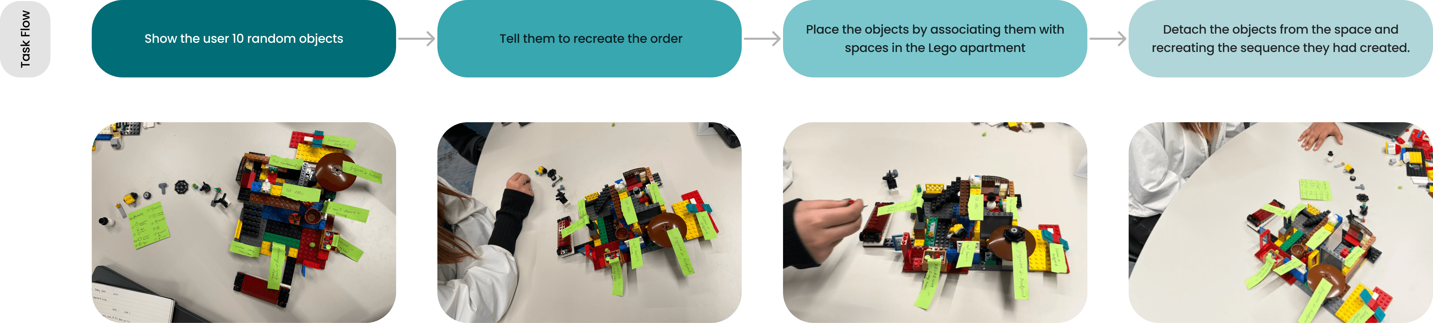 We used a Lego apartment as a memory palace to test spatial recall with 10 objects before moving to VR, helping us understand user behavior before committing to VR development.